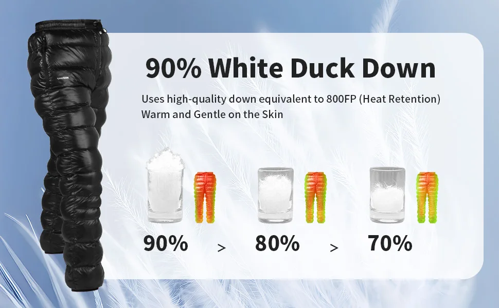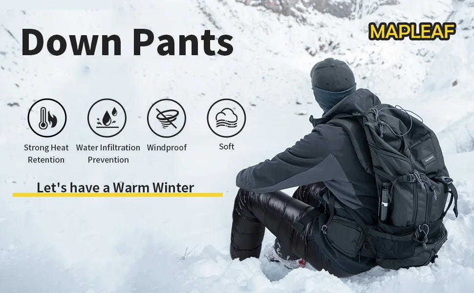 MAPLEAF Down Pants Ultralight Warm Down Trousers 800FP Winter Snow Pants Windproof Waterproof Ski Pants Camping Hiking Trousers